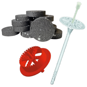 7. Kołki i zaślepki montażowe – Kołki (tzw. dyble fasadowe) służą do mechanicznego mocowania materiału izolacyjnego do podłoża. Zaślepki natomiast zabezpieczają główki kołków przed mostkami termicznymi. Zalety kołków: • Stabilne mocowanie ocieplenia • Różne długości i typy (z trzpieniem plastikowym lub metalowym) • Dopasowanie do rodzaju podłoża (beton, cegła, gazobeton) Zalety zaślepek: • Eliminacja mostków termicznych • Poprawa estetyki powierzchni • Ochrona przed wodą i mrozem